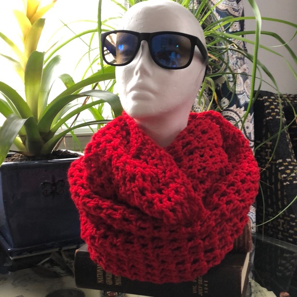 Stay warm in the cold weather with this cozy and chunky scarf! This Infinity scarf is hand Crocheted by me! It is meant to loop around your neck twice. Never worn and made of new materials. Comes from a clean and smoke free home.