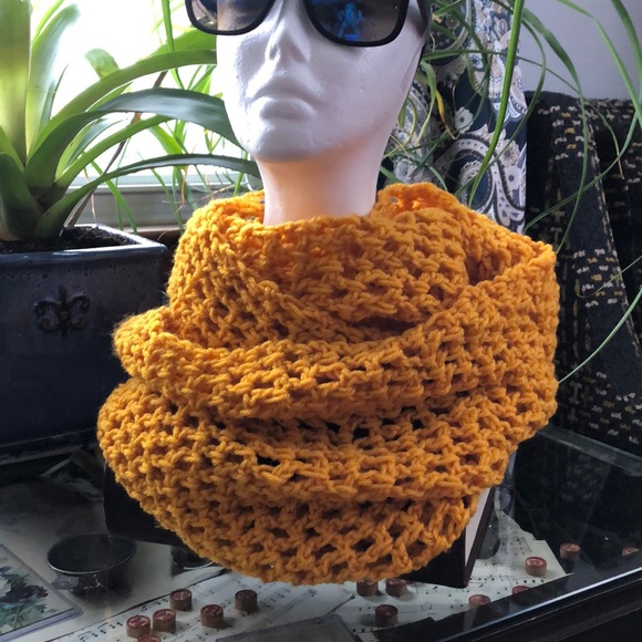 Stay warm in the cold weather with this cozy and chunky scarf! This Infinity scarf is hand Crocheted by me! It is meant to loop around your neck twice. Never worn and made of new materials. Comes from a clean and smoke free home.