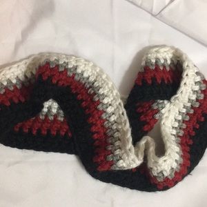 Handmade infinity scarf. Red, black and cream color. Never before worn.