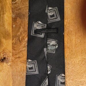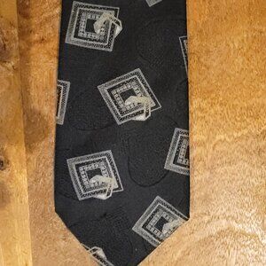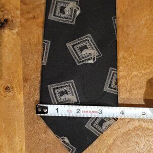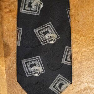 Handmade Italian Black Silk Tie with stamp pattern - Elegant black tie with stamp pattern