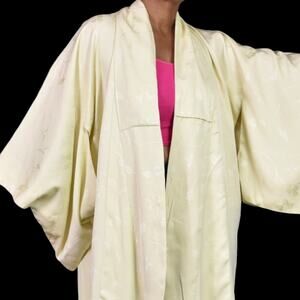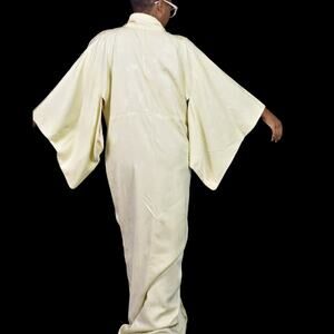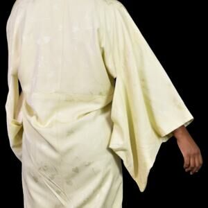 Handmade Japanese Kimono Robe Yellow Iromuji Light Pastel Jacquard Silk One Size