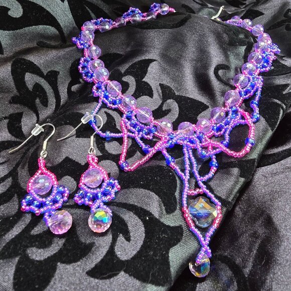 Handmade Jellyfish inspired 925 Sterling Silver Necklace Earring Set Purple/Pink