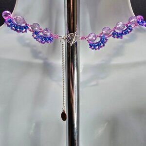Elevate your style with this exquisite jellyfish-inspired necklace and earring set. Handcrafted from 925 sterling silver, it features a beautiful blend of purple and pink hues. Perfect for ocean lovers and statement jewelry enthusiasts.