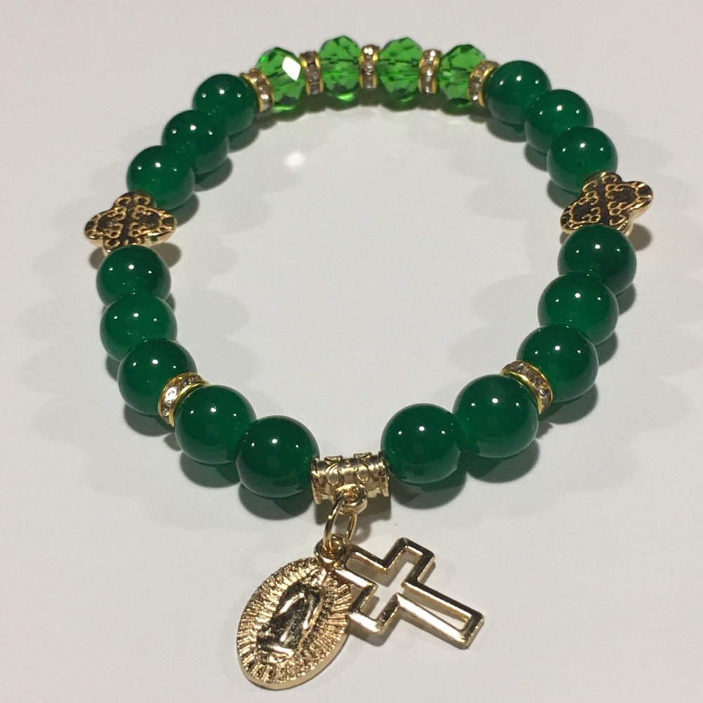 This is handmade costume jewelry made by me. All material is glass and/or stone, no plastic. Most are stretch pieces. Some are adjustable. I made higher end jewelry years ago. My eyes can’t make those detailed pieces anymore. I hid about 100 pieces here at my home some time ago, and can’t seem to find it now Haha. If or when I do find it, keep checking back in my closet, they are really high quality pieces.