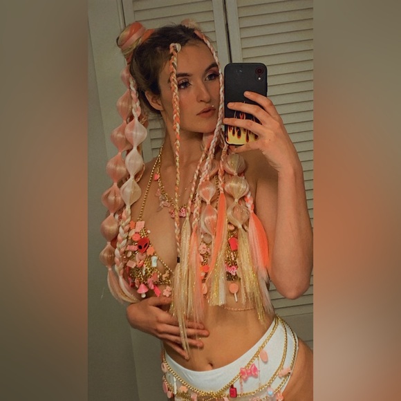Comes loaded with charms. Includes belt, bralette, and necklace! I do have the hair set shown available as well for an extra charge if desired!