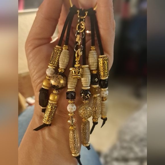 Black and gold handmade glass bead Keychain-charm varies but stays within theme.