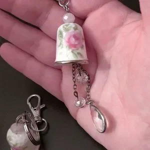 Acrylic painted and glazed clay bell keychains. Clay is thick in width for better durability but of course they are fragile.