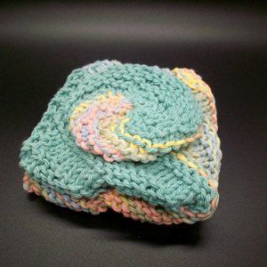 Handmade Knit Cotton Wash Dish Spa Cloth Scrubbie Set