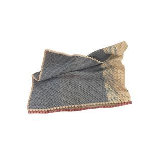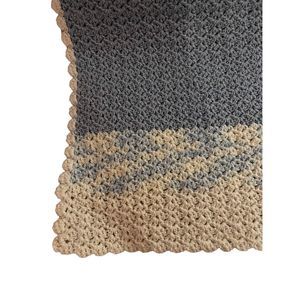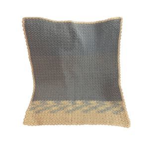 Handmade Knit Crochet Baby Blanket Pastel Blue White Lap Blanket Size 30” X 35”