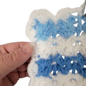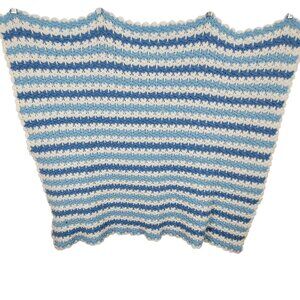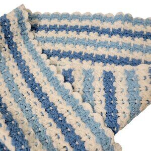 Handmade Knit Crochet Baby Blue White Striped Blanket Throw Modern Home Decor