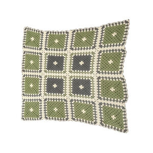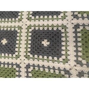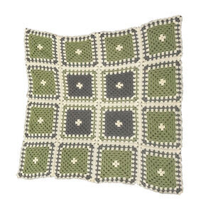 Handmade Knit Crochet Throw Blanket Afghan Granny Square Cream Grey Green 37x37