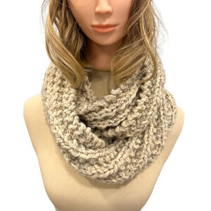 This item was handmade by me with Lion Brand Wool-Ease yarn. The headband has a large single cable row and will keep your ears warm. The Infinity scarf can work in a double or single loop.
