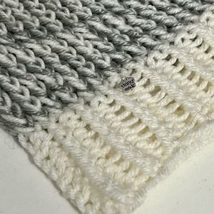 Handmade Knit Messy Bun High Ponytail Beanie Hat Gray White Crochet Unisex