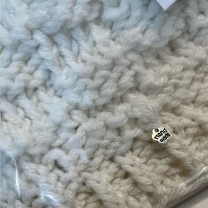 Features a classic basket weave knit pattern in a creamy white acrylic yarn. This unlined but warm beanie is suitable for fall and winter weather.