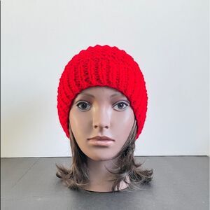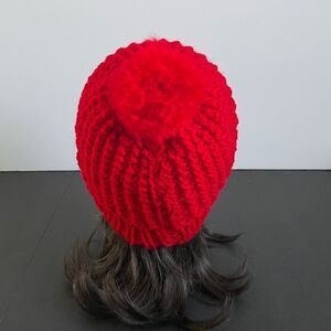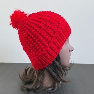 NWOT hand knitted hat with pom pom in red