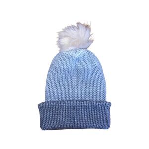 Handmade double layer knit hat with removable faux fur pompon