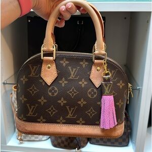 Key fob and tassel keychain made from Authentic Louis Vuitton Vintage Boston bag (last photo)
