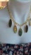I made this necklace using "Jeweler's quality 10k gold plated" chains from "The Jewelry Shoppe" line of findings. I used 3 different styles, and thickness. I used 5 gold electroplated Labradorite oval shaped pendants. It can easily be adjusted. The whole necklace weighs 1.7 ounces.