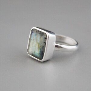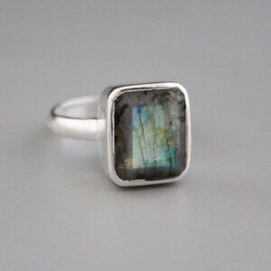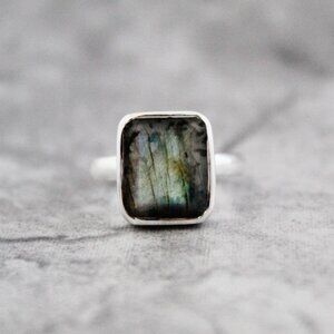 Handmade Labradorite Ring: 925 Sterling Silver Gemstone, Dainty Statement Ring