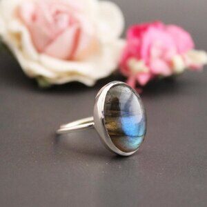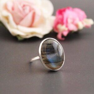 Handmade Labradorite Sterling Silver Ring: Oval Gemstone Statement