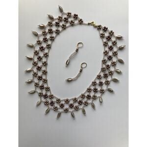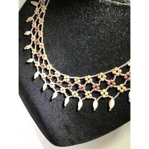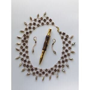 Handmade all glass bead lace-like 21in necklace with matching 2in earrings. *Pen not included