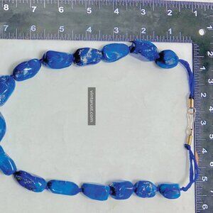 Handmade Lapis Lazuli Gemstone Necklace, Vintage Beaded Stone Necklace, Natural