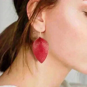 Handmade Leaf Dangle Leather Teardrop Earrings