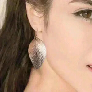 Handmade Leaf Dangle Leather Teardrop Earrings