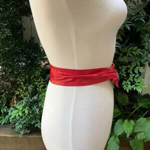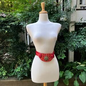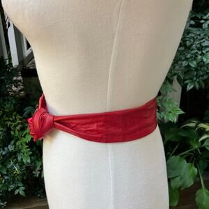 Handmade Leather Belt OOAK Tie Wrap 40” Red Croc Embossed Pendant Boho Festival