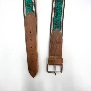 Handmade Leather Belt Woven Tribal Animal Motifs Green Tan