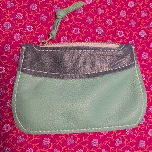 Handmade Leather Coin Purse Patchwork Cosmetics Bag Gold Tone Zipper Contrast Stitching