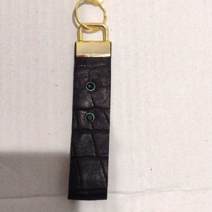 Handmade Soft Genuine Leather keyfobs. Crocodile embossed, with decorative colored crystal rivets and gold hardware. Each embossing is unique. keyfob length 5 inches. Keyring diameter 1 inch. Crystals available in