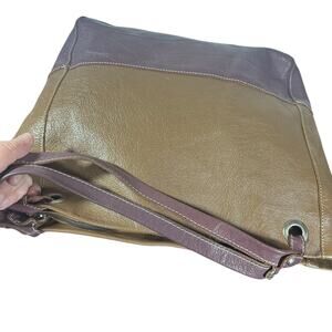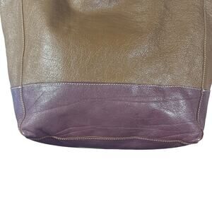 Handmade Leather Tote Bag – Brown & Plum Colorblock Shoulder Purse Boho Chic