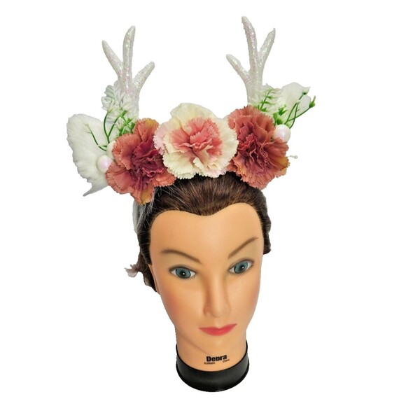 This beautiful handmade headband features a magical mix of sparkling deer antlers, soft faux fur, decorative flowers, and built-in LED lights.