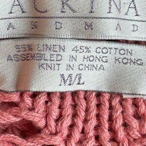 Handmade Linen Chunky Cable Knit Sweater Pink Open Knit MACKINAW Women's M L