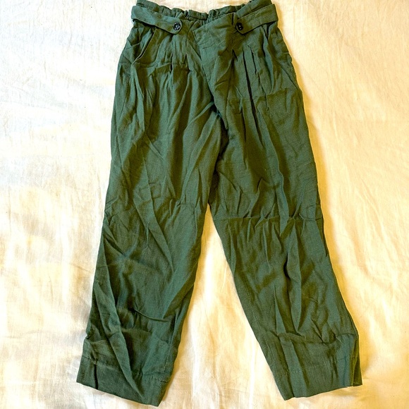 Handmade and tailored for me in Hoi An, Vietnam! Paper bag style pant. Inseam is about 20” but can be lengthened by a tailor by 1-2”. Only worn a couple times. I would say more likely size 2 women’s pants, as I. A side 4 now and they’re a little tight on me now.