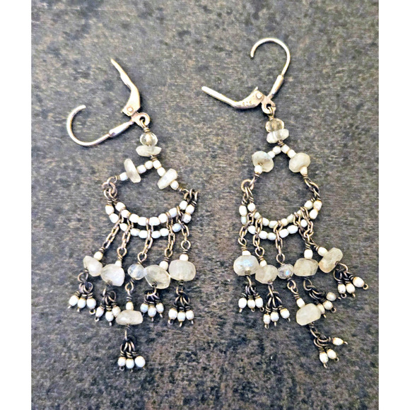 Handmade Long Dangle Chandelier Earrings Moonstone with sterling silver earwires