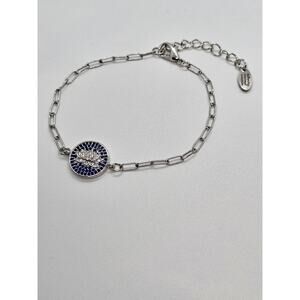 Elevate your style with this stunning handmade bracelet, featuring a beautifully detailed lotus connector adorned with clear and blue cubic zirconia (CZ) stones. The intricate design of the lotus flower symbolizes purity and new beginnings, making this piece not just an accessory, but a meaningful addition to your jewelry collection. At the end of the extender is a tiny charm that says "serenity courage wisdom" from the AA NA or 12 Step serenity prayer.