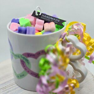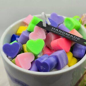 Handmade ✦ Love Is… Ceramic Mug Candle ✦ Rainbow Heart Wax Sherbet Scent NWT