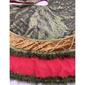 Handmade Christmas Tree Skirt 60" Red Gold Green EUC