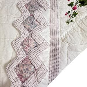 Handmade Machine Stitched Quilted Throw Hummingbird Cottage Garden 46 x 58 Stain