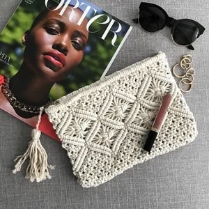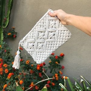 Beautiful handmade macramé clutch with fringe tassel collected from world travels. From beach to brunch this handbag is suitable for every occasion. This bag is very durable and is knotted with thick cotton rope.This macrame bag is a perfect alternative to plastic bags for trips to the grocery store, farmers market or any shopping. It is made with 100% cotton cord