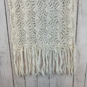 Handmade Macramé Cream Shaw Boho Art to Wear Scarf Wrap with Fringe One Size