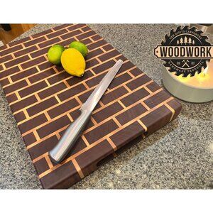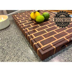 Handmade Mahogany & Maple Wooden Brick Pattern Cutting Board With Juice Groove