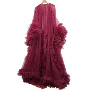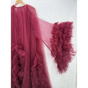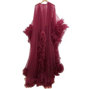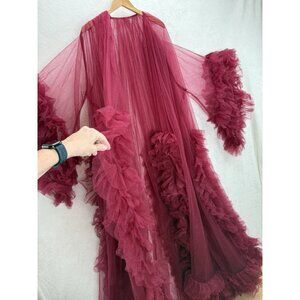 Handmade Maroon Red Mesh Tulle Long Kimono Ruffles OSFM