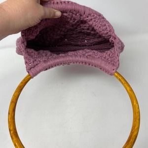 Handmade Mauve/Lavender Crocheted Round Pouch Purse with Round Handle