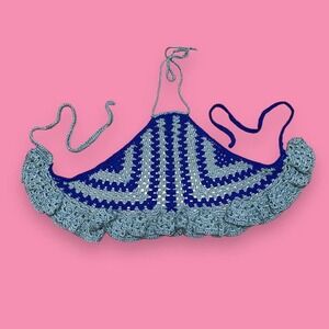 Handmade Mermaidcore Crochet Acrylic Knit Halter Tie Cropped Ruffle Top Size M