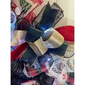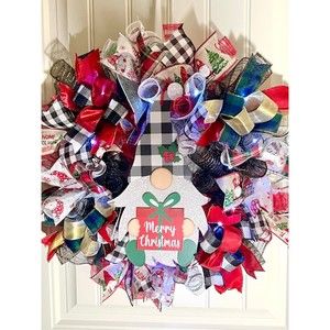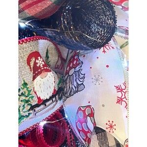 Handmade Merry Christmas Gnome Holiday Ribbon Door Wreath 22 ins W46