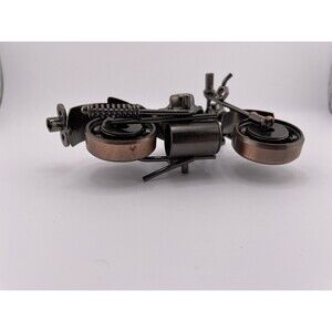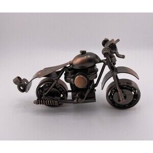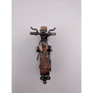 This handmade metal motorcycle is a unique addition to any collection. The copper color gives it a vintage feel that is sure to catch the eye of any enthusiast. The bike is perfect for those who love the nostalgia of the open road and the thrill of the ride.