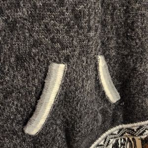 Handmade Mexican Angora Sweater with hood, pockets and Mayan design